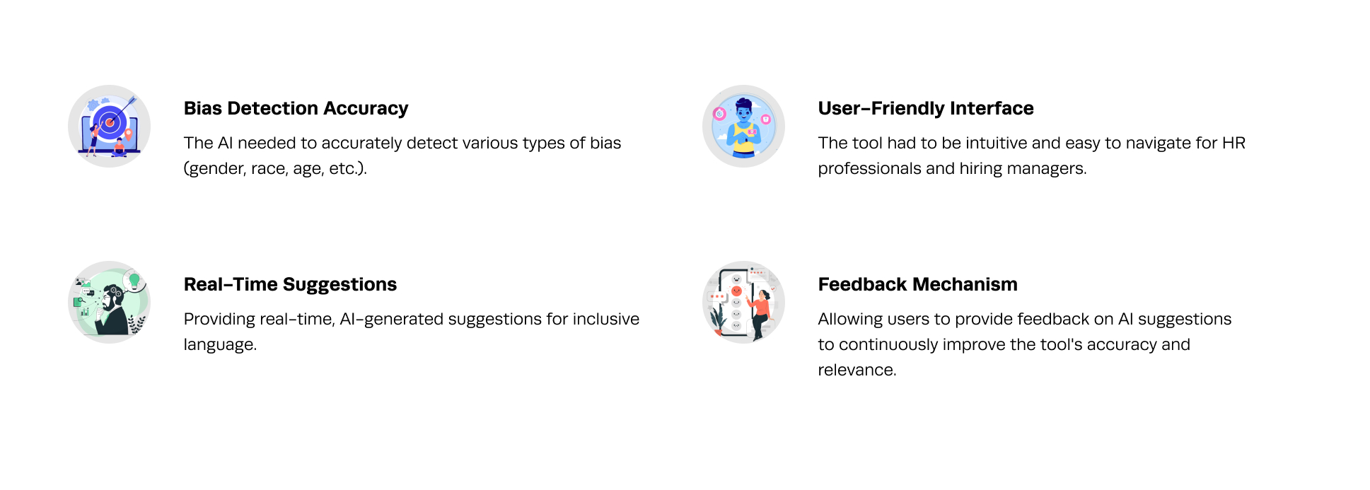 To address above mentioned challenges, there is a need for an automated solution that leverages AI to detect and suggest corrections for biased language in job descriptions. This solution should:
