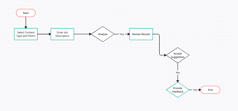This included the steps from typing/pasting a job description for reviewing and implementing AI-generated suggestions.