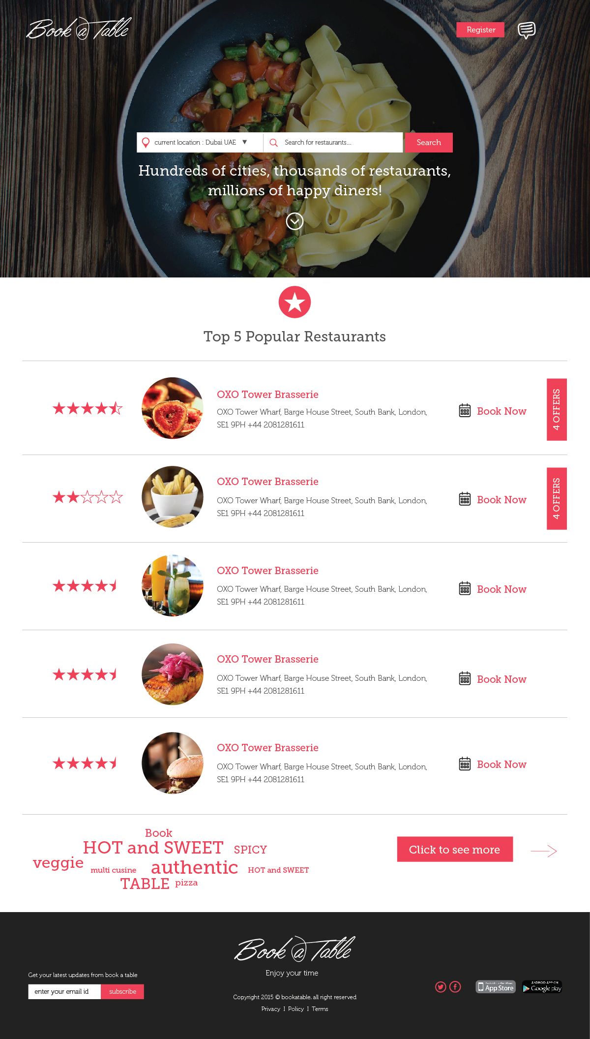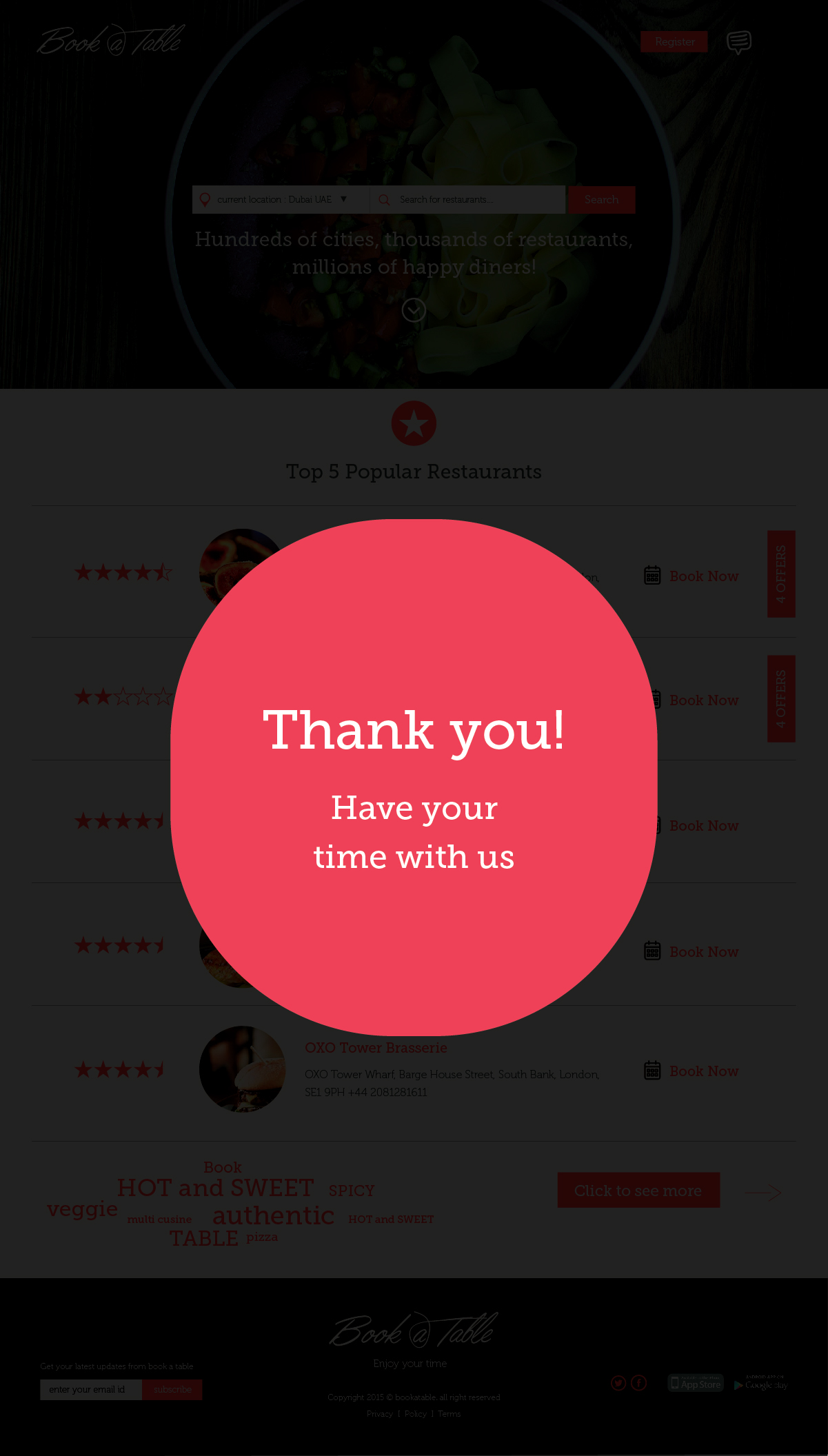 'Book A Table' website helps you find new restaurants; view restaurant menus, reviews, and photos; and earn reward points towards your next delicious meal.
