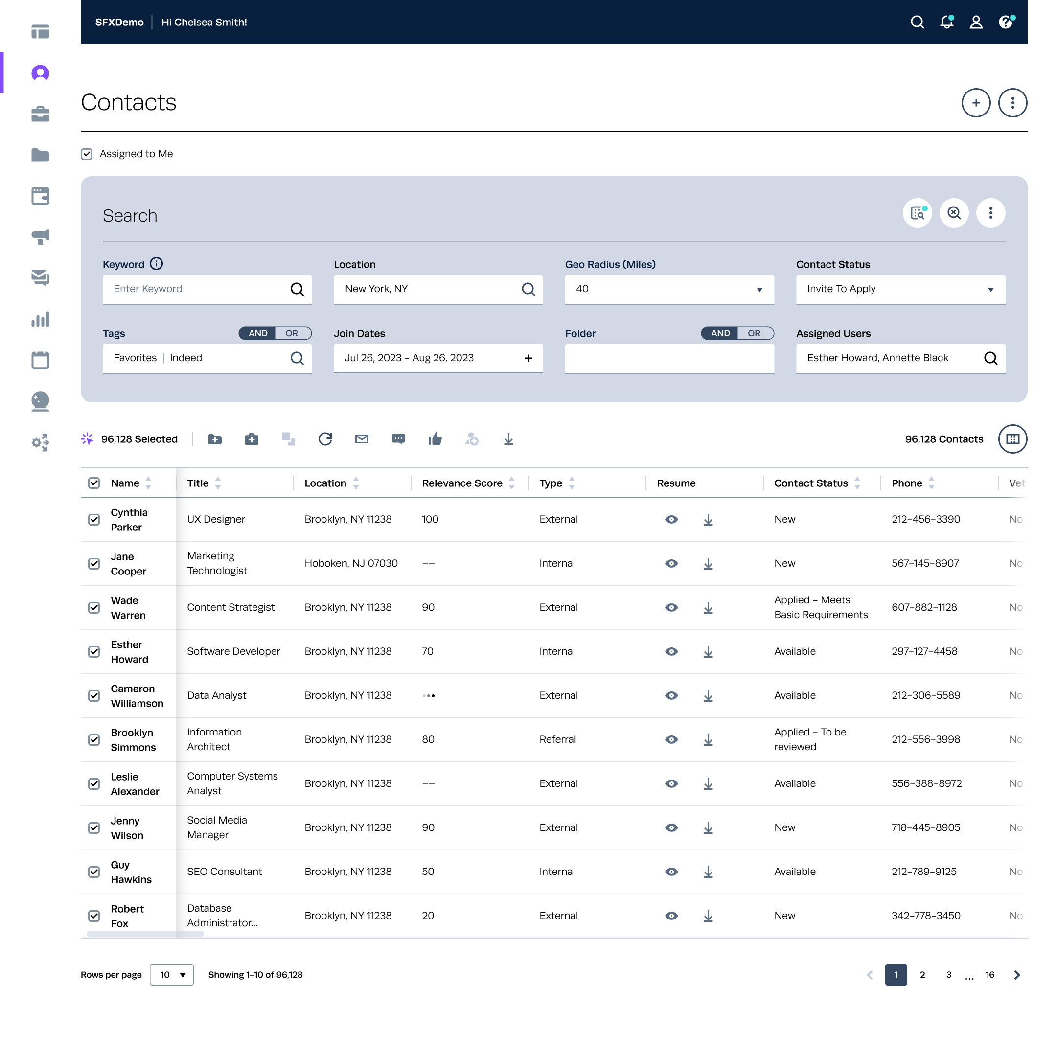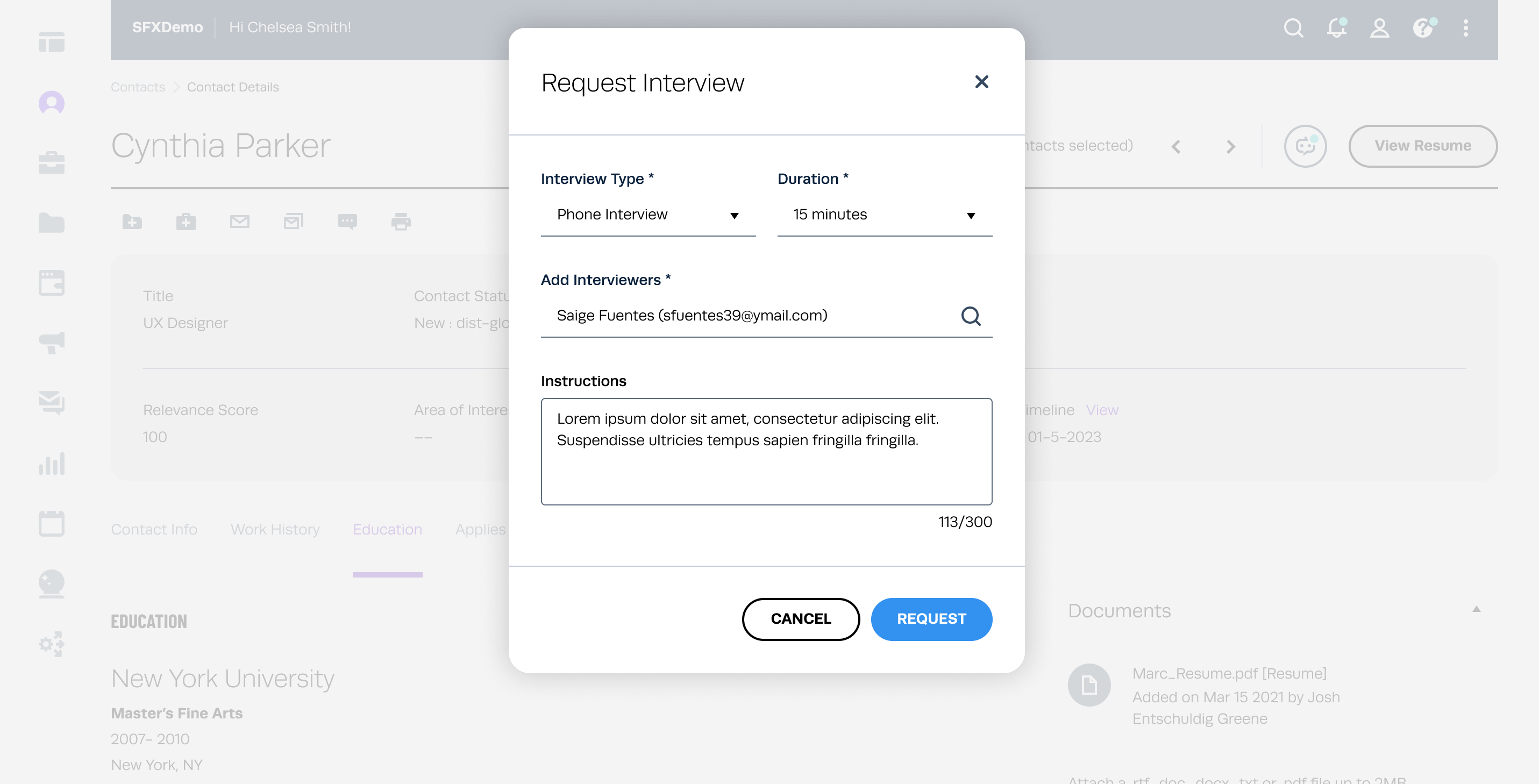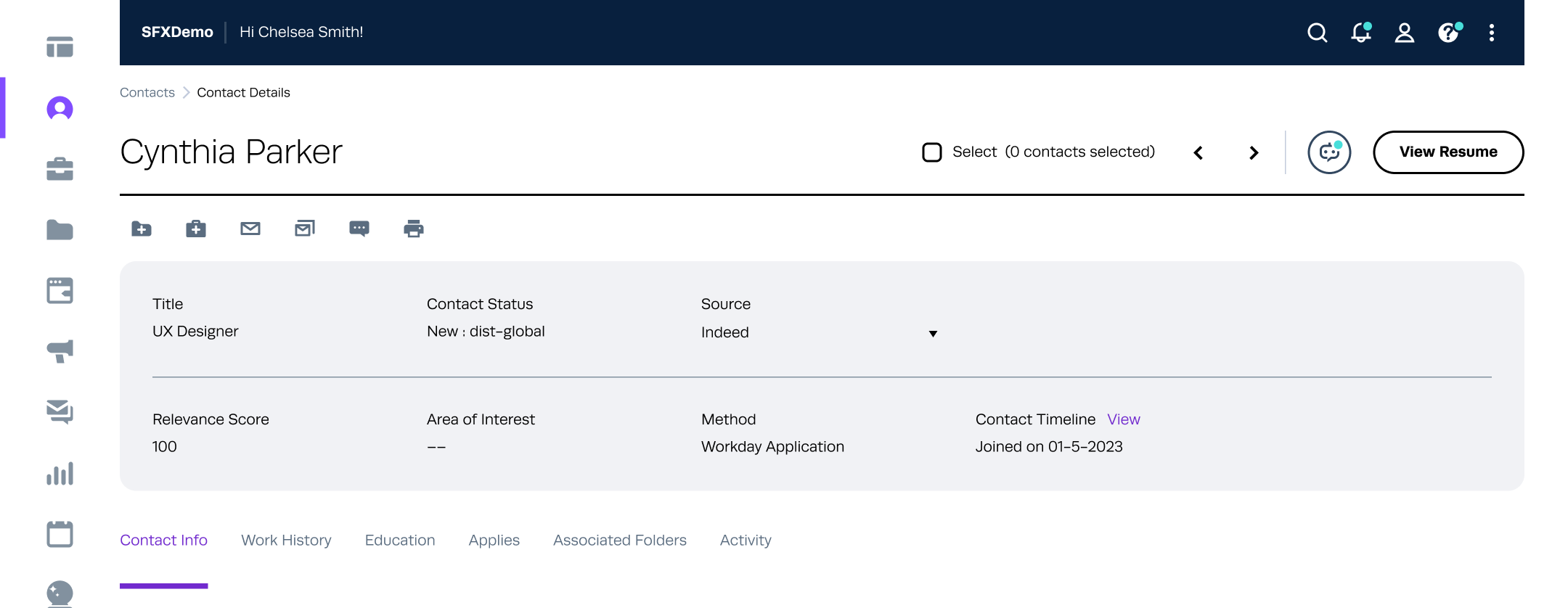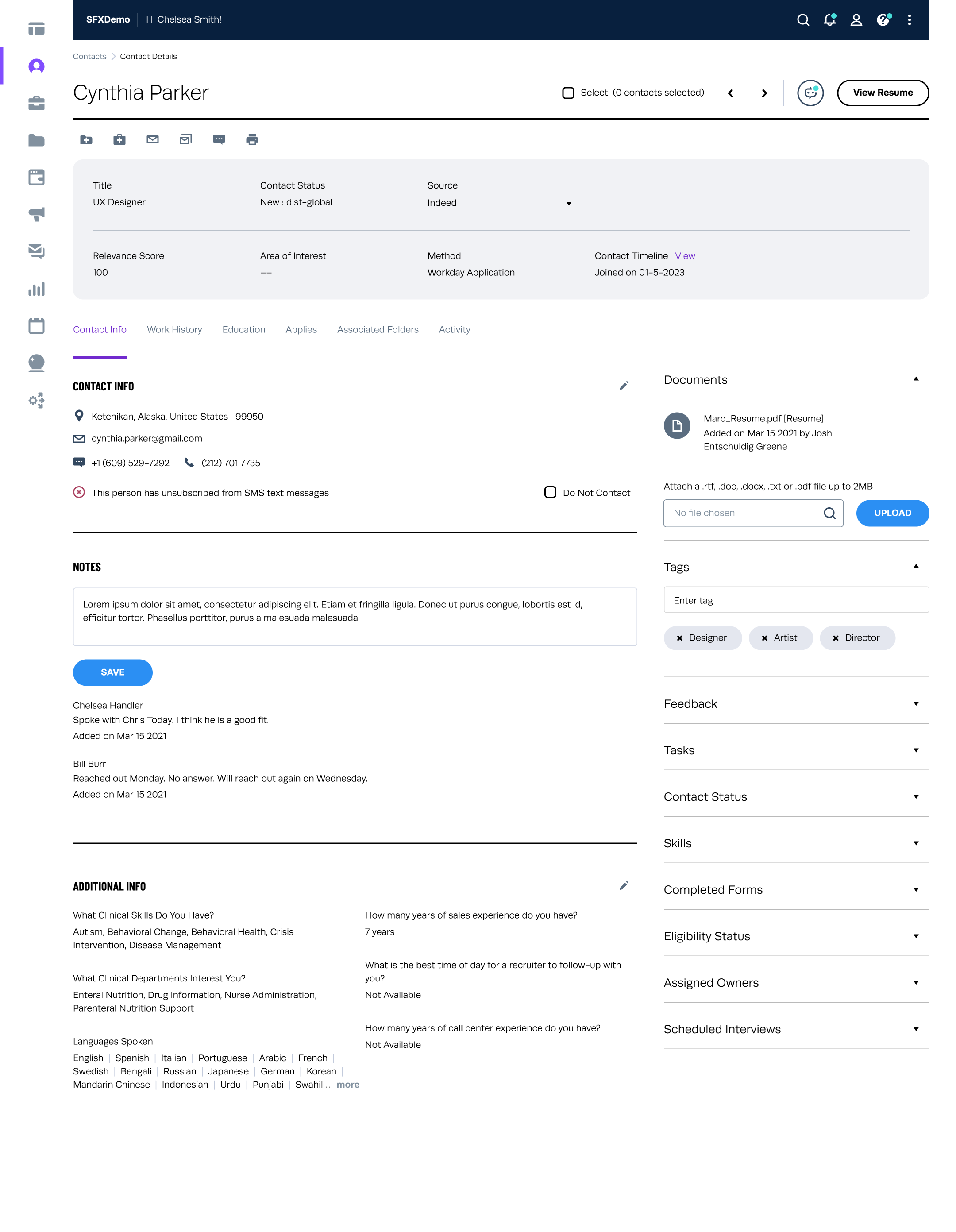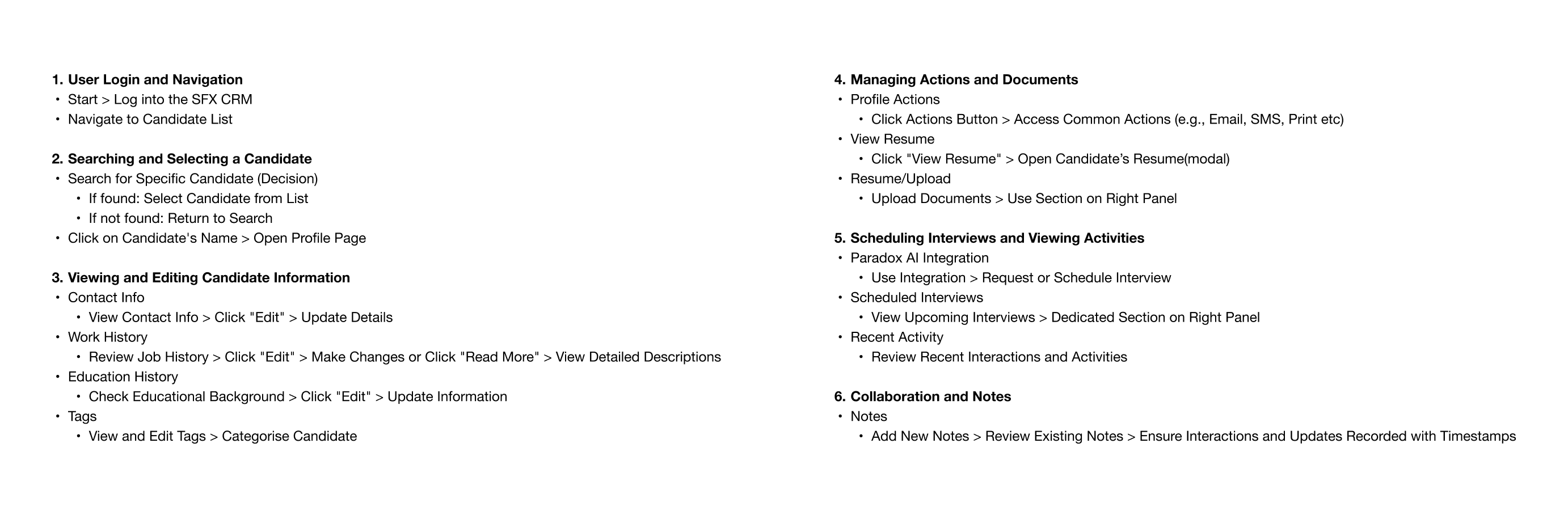 Goal is to give people the ability to efficiently manage candidate information, streamline recruitment processes, and make informed decisions by accessing a comprehensive and user-friendly candidate profile page embedded within the SFX CRM platform.