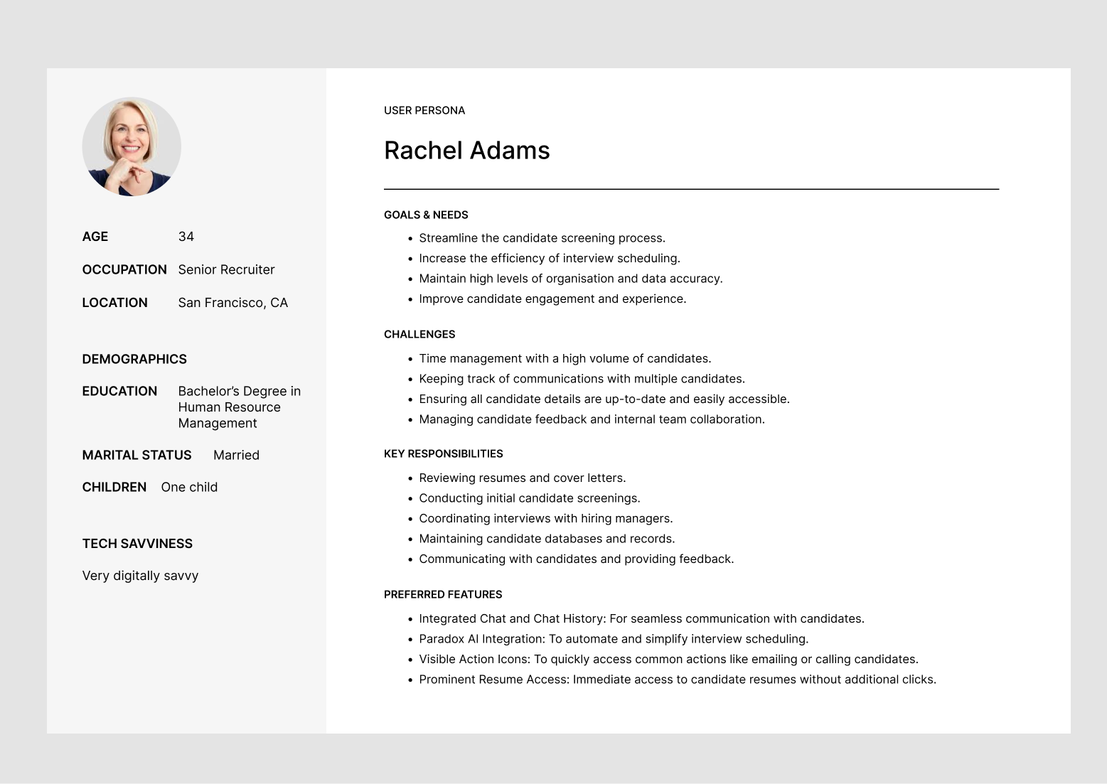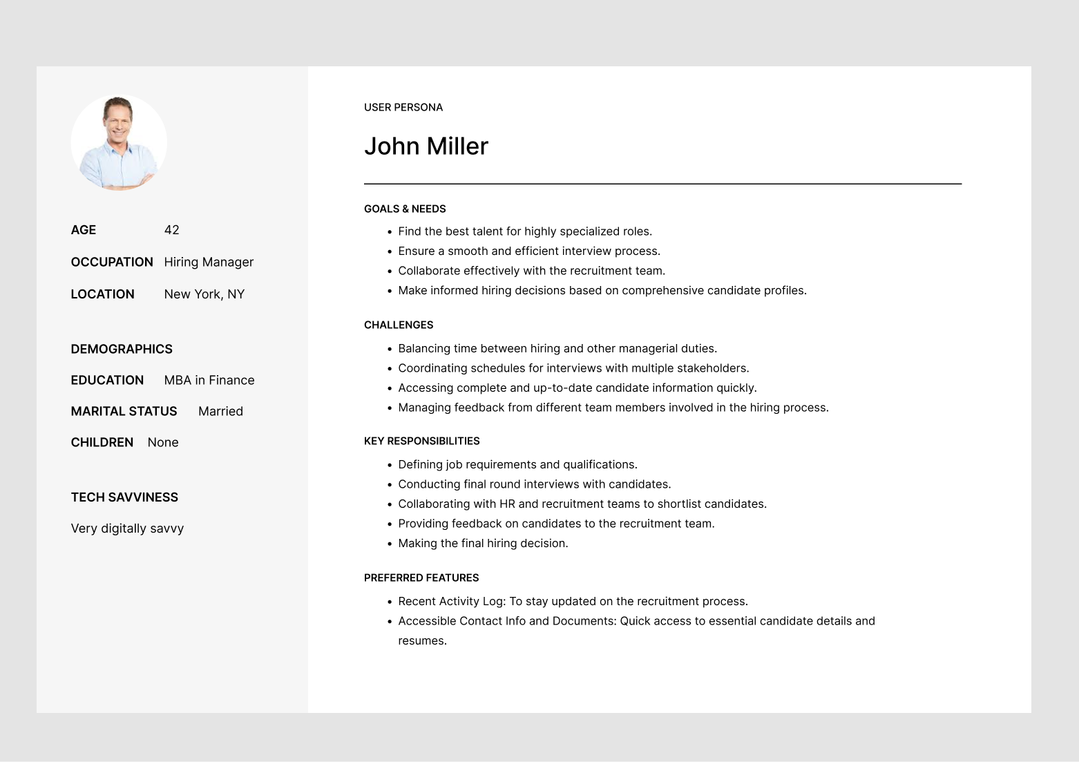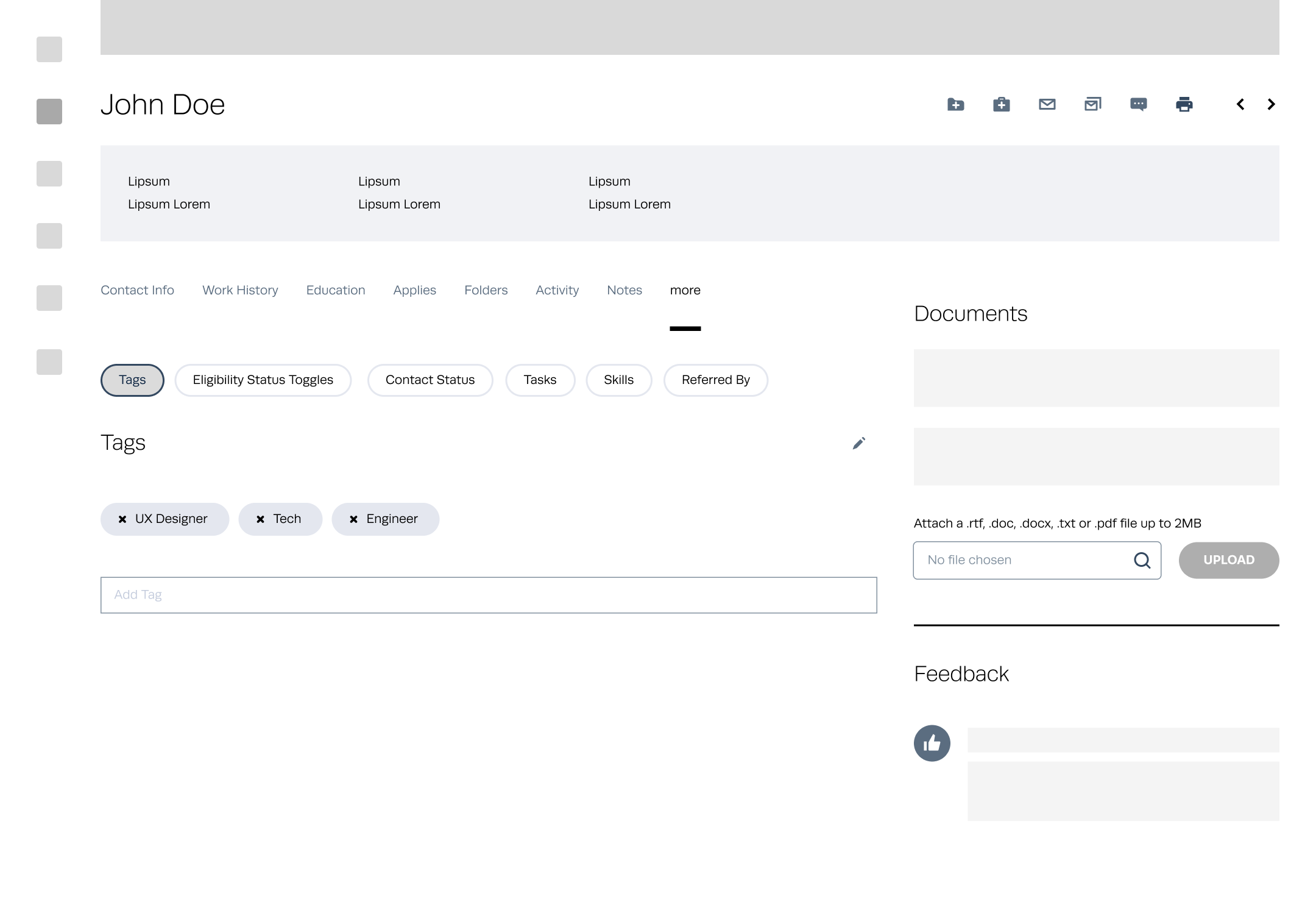 Current candidate profile page often suffer from fragmented and incomplete information, leading to inefficiencies and a poor user experience. Recruiters need a centralised, intuitive feature to manage candidate data effectively.