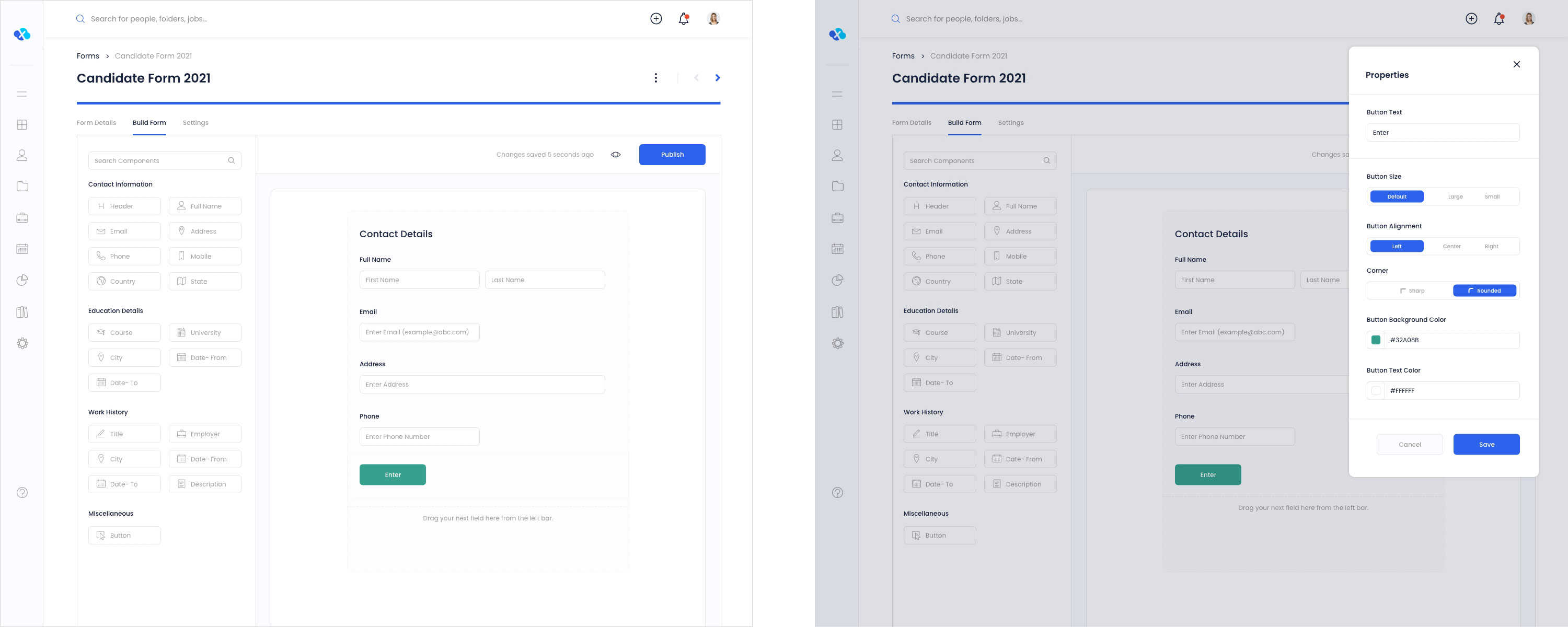 Build Form Completed   |   Button Properties Modal