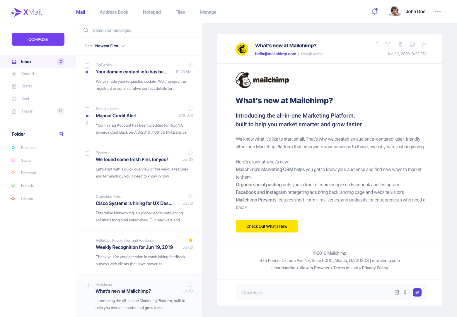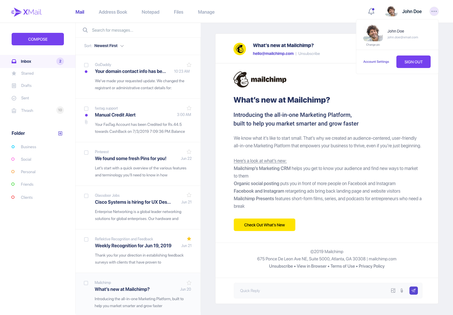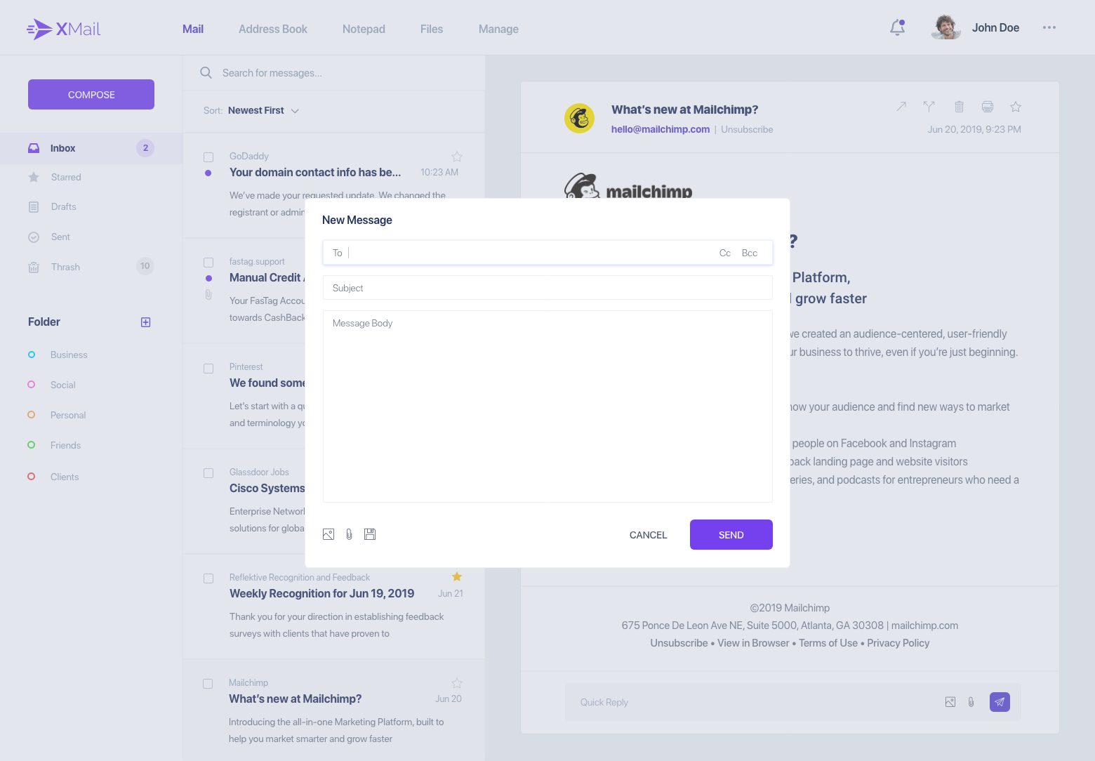 - ●   Mail client landing page- Inbox.