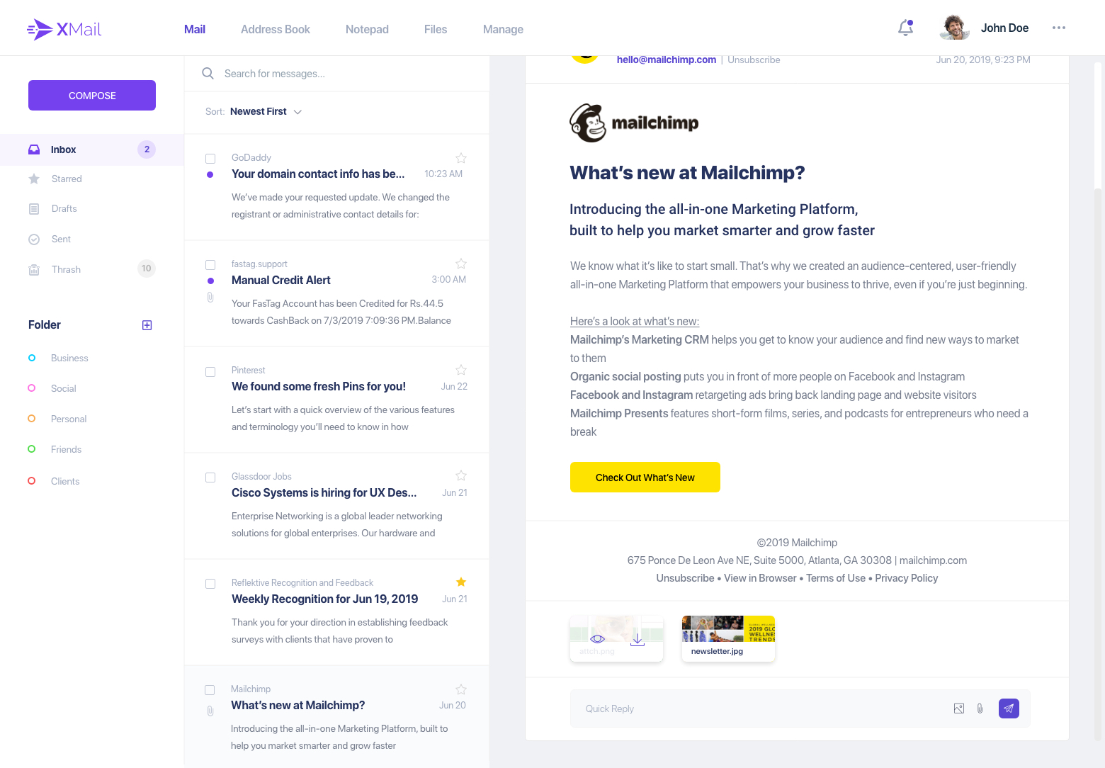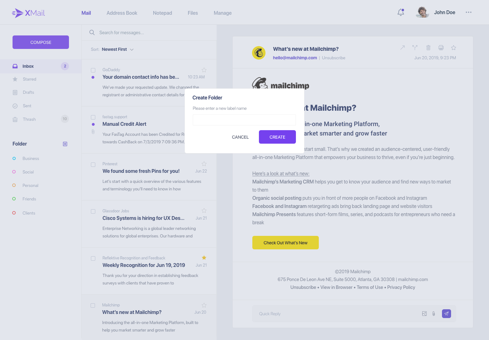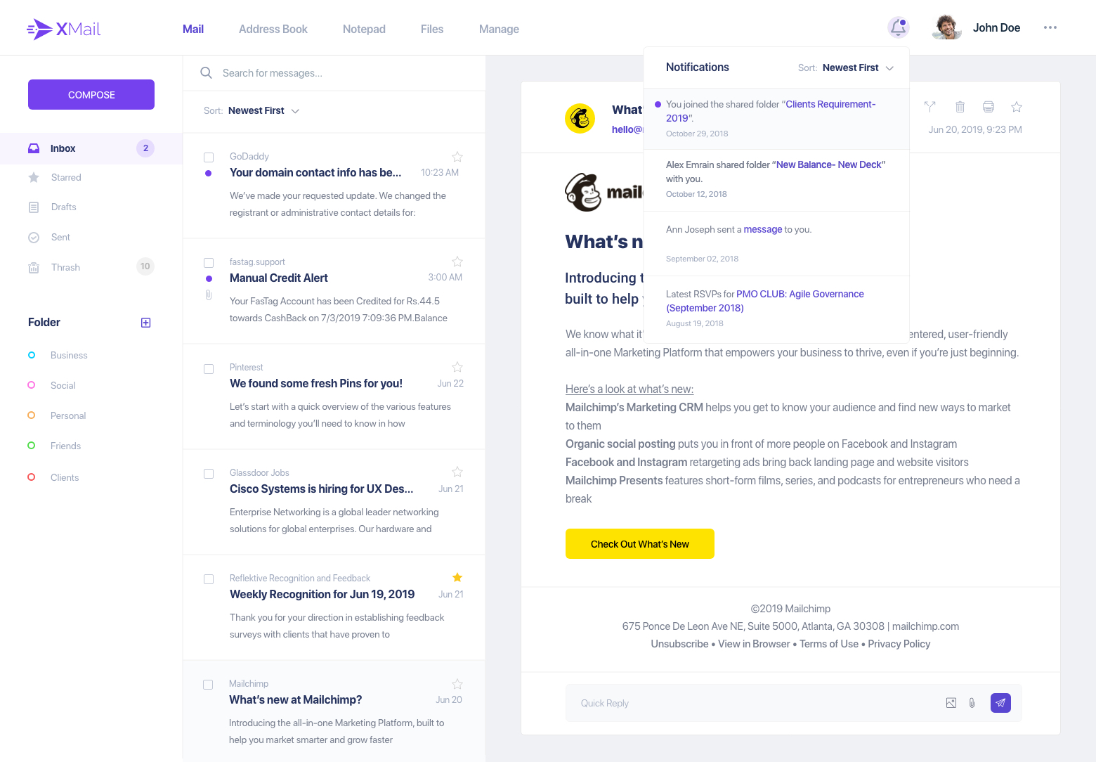 - ●   Mail client landing page- Inbox.