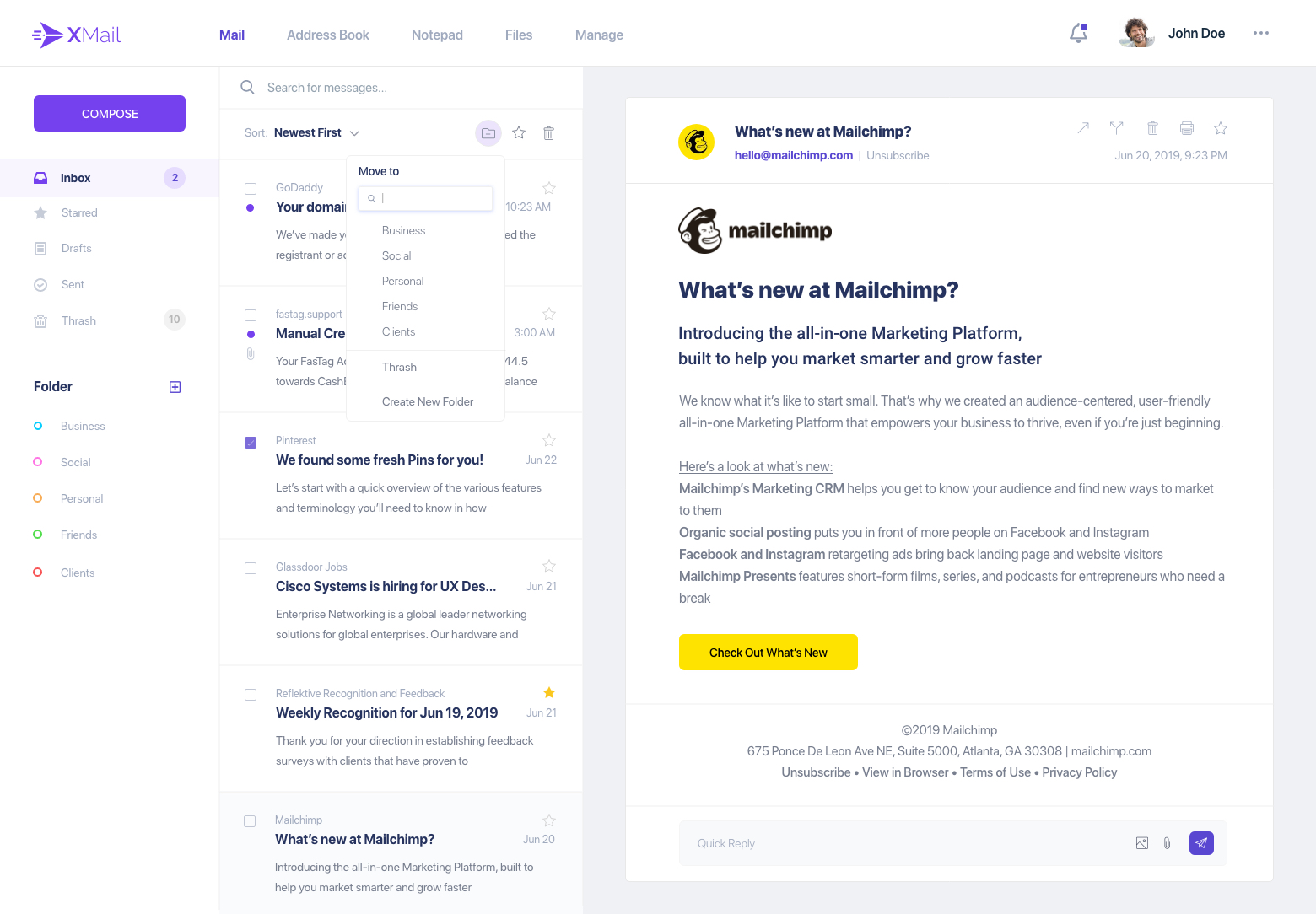 - ●   Move to folder- dropdown.