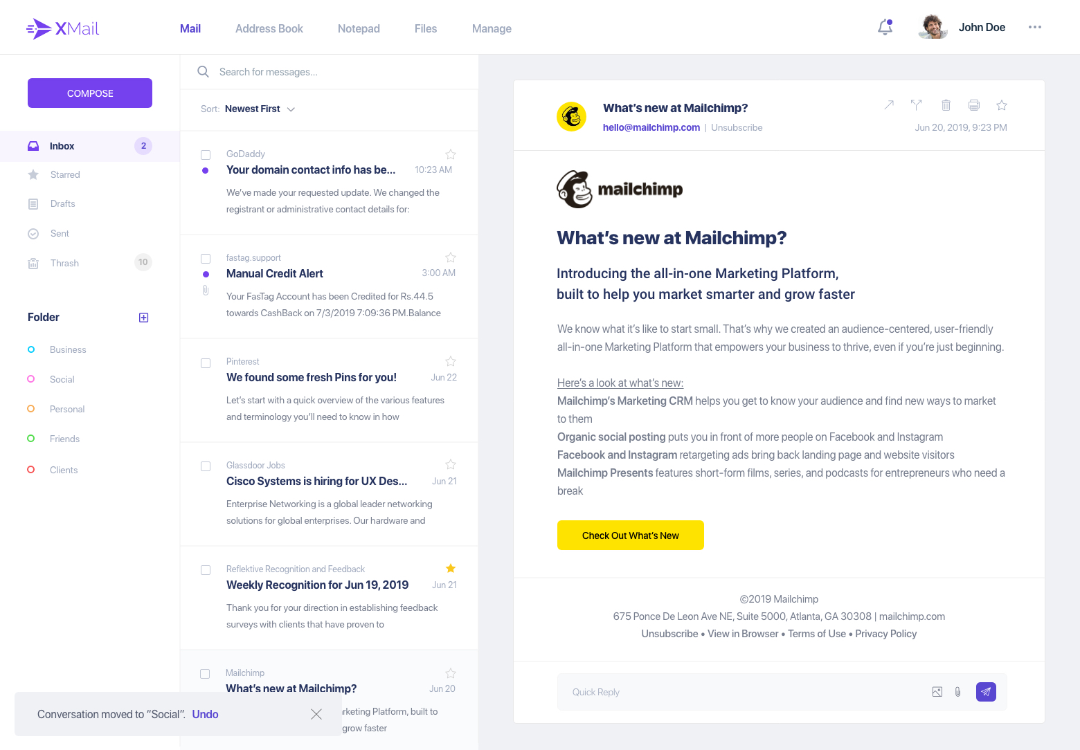 - ●   Move to folder- toast notification.