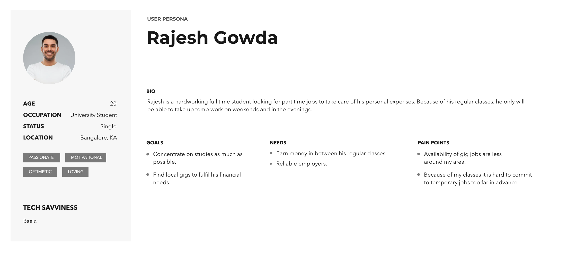 Scenario(Anticipated): Rajesh is a hardworking full time student looking for part time jobs to take care of his personal expenses.